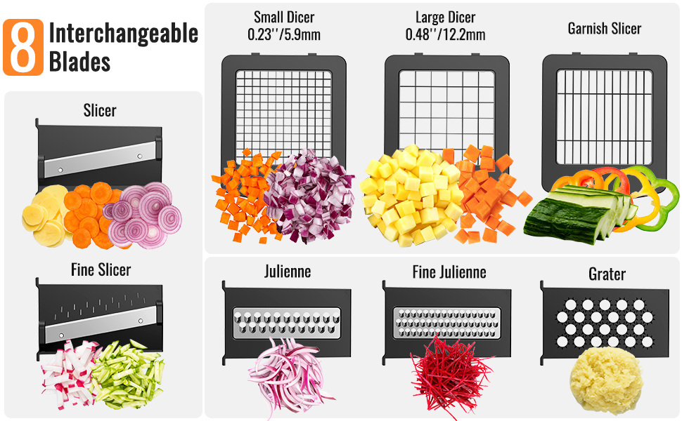 -Game Changer for Cooking: This 8-Blade All in One vegetable chopper makes slicing, dicing, and chopping quick and effortless, it’s a time saver and game changer for how you prep food in the kitchen.